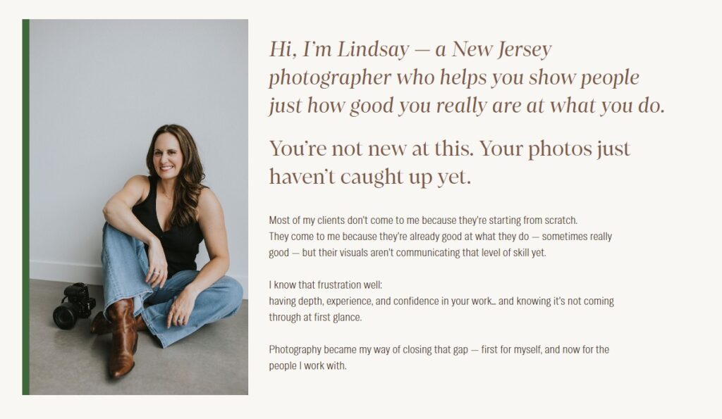 Want a homepage that feels welcoming instead of generic? Show your face. A strong hero image instantly makes your site feel personal and trustworthy. This is also a GREAT place for a hero video if you added that on!