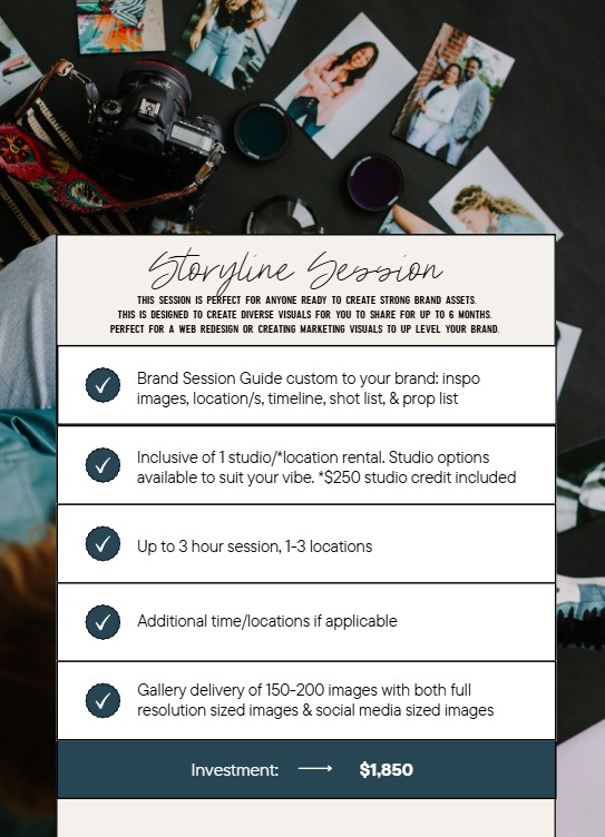 But the real magic? You’ll have months of scroll-stopping visuals, not just three cute selfies but visuals that will help you share your content! This is why brand storytelling sessions also focus on personalized stock imagery so use them!