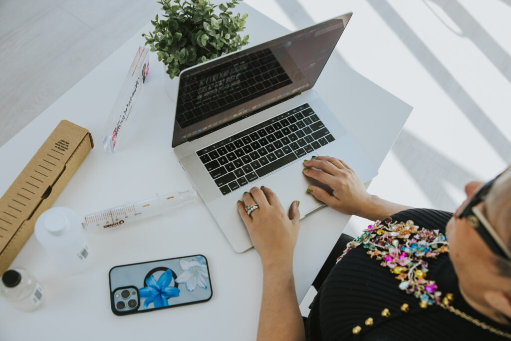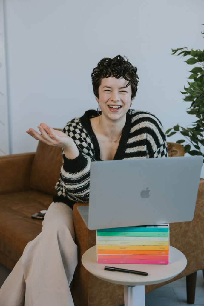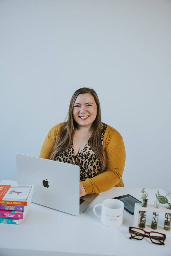Alyssa Sanford of Studio Alyssa helps people “create magnetic design for an online presence that feels like YOU.” She helps people stand out with their brand ad web design in an oversaturated market. Alyssa shares, “if you have done with the DIY thing, built the business, and now you’re ready for a brand and website that can keep up; something that doesn’t just look good, but feels aligned and helps you grow this is for you.” We had fun creating some personal desk scenes and make sure we included her books and fabulous smile.